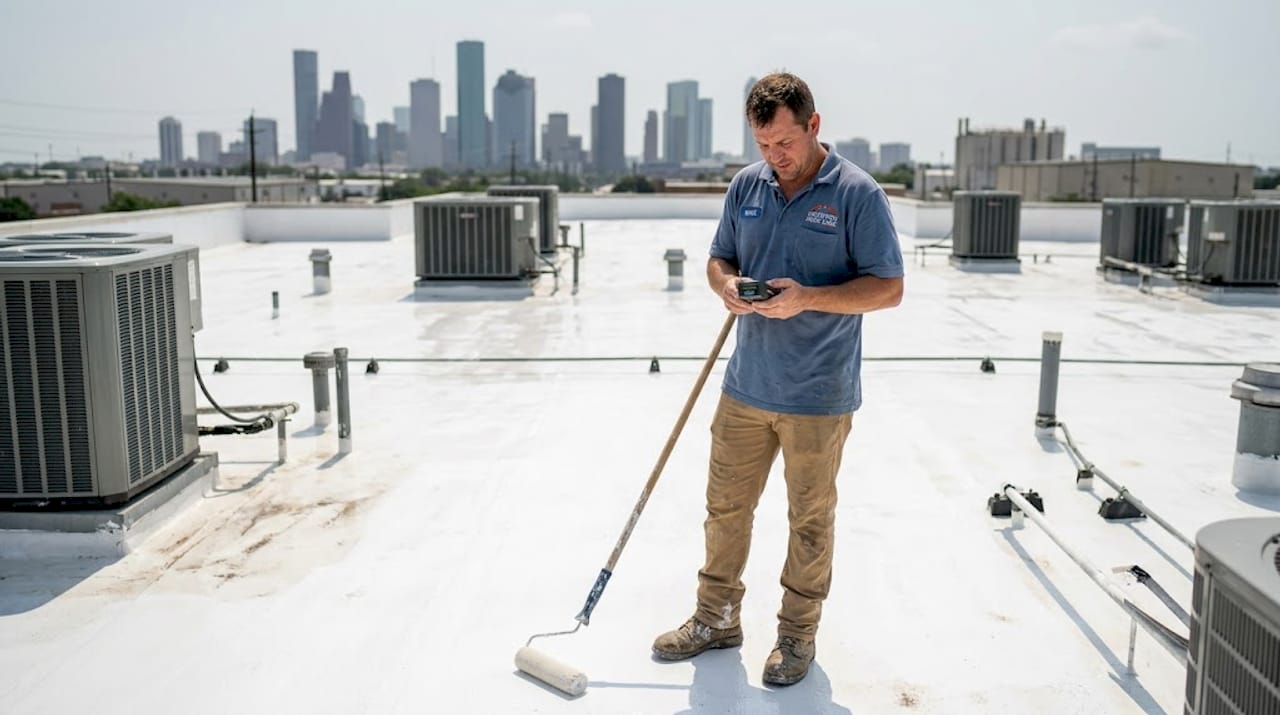 For most commercial flat roofs in the Houston area, silicone coatings are a strong choice because standing water after a heavy rain is almost guaranteed. Acrylic coatings shine on roofs with good drainage where UV protection is the top priority. Polyurethane is the go-to for rooftop walkway areas or spots with foot traffic. Polyurea’s fast cure time can be a lifesaver when you need to minimize downtime for a business.